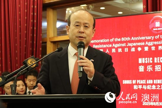 人民網堪培拉9月1日電 8月30日,“和平與紀念之聲:80年回響”—紀念中國人民抗日戰爭暨世界反法西斯戰爭勝利80周年音樂招待會在駐澳大利亞使館舉辦。中國駐澳大使肖千,澳聯邦參議員休布里奇、各界人士,