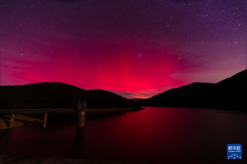 這是6月1日在澳大利亞堪培拉郊外拍攝的極光。 新華社發(儲晨攝)