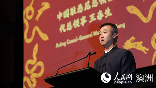 人民網悉尼9月30日電 澳大利亞新南威爾士州(新州)中國留學人員國慶中秋晚會于27日晚在悉尼市政廳舉行,約1500名中國留學生及中澳政商界、教育界代表出席。 中國駐悉尼總領館副總領事王春生在晚會上致