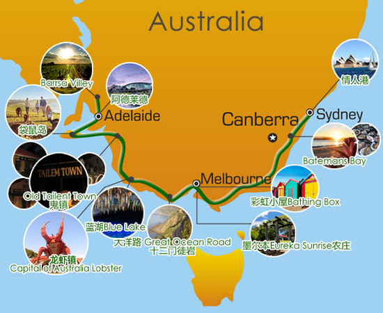 在接下來的十二天里,我們將駕車兩千多公里,途經悉尼、墨爾本、阿德萊德三大城市。在全游網專業導游、有過9次環澳經歷的小白的帶領下,領略海洋、森林、湖泊、火山、瀑布、峽谷等原生態美景,沿海自駕、穿越沙漠、探險叢林、體驗漁獵、露營野外、探秘土著文化并與野生動物來一次親密接觸。