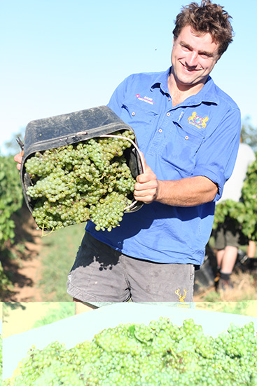 新生代活力四射的獵人谷高級釀酒師斯圖瓦特?霍頓(Stuart Hordern)和他鐘愛的賽美蓉葡萄(鉑高匯精品酒莊提供)