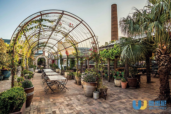 悉尼大名鼎鼎的The Grounds of Alexandria坐落在老工業區,由廢棄停車場改造而成。與其說它是一個餐廳,不如說它是一個生鮮農產品集市。餐廳占地面積將近一公頃,包含有咖啡館、手工烘培店以及一個永續栽培花園(permaculture garden),花園里種植了品種豐富的蔬菜、香草、水果以及花卉,并帶有一個小型動物農場。餐廳的美食全部來自花園里種植的有機食物。中秋之夜,一家人坐在餐廳外的盆栽棚中,享受著地道的農家美味,無比愜意。
