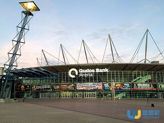 Qudos Bank Arena,曾經叫Sydney SuperDome、Acer Arena以及Allphone Arena,坐落在悉尼奧林匹克公園之中。作為2000年悉尼奧運會的主要場館,這里不但是世界十佳體育館之一,同時也是澳洲最大的室內娛樂競技類場館。這個斥資超過2億澳元興建而成的可容納2,1000人的大體育場還有一個功能——開演唱會。2013年,水果姐Katy Perry曾在這座場館連唱六場,更以總觀眾89,500人次打破了此前由One Direction保持的81,542人次悉尼演唱會人數紀錄。
