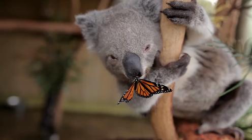 澳動物園拍宣傳片 蝴蝶搶鏡“吻”考拉鼻頭