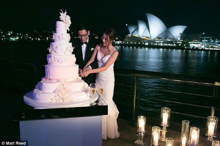 最后,在身后煙火的點綴下,兩人在Quay可以眺望悉尼歌劇院的陽臺上切婚禮蛋糕,完成了慶祝儀式。