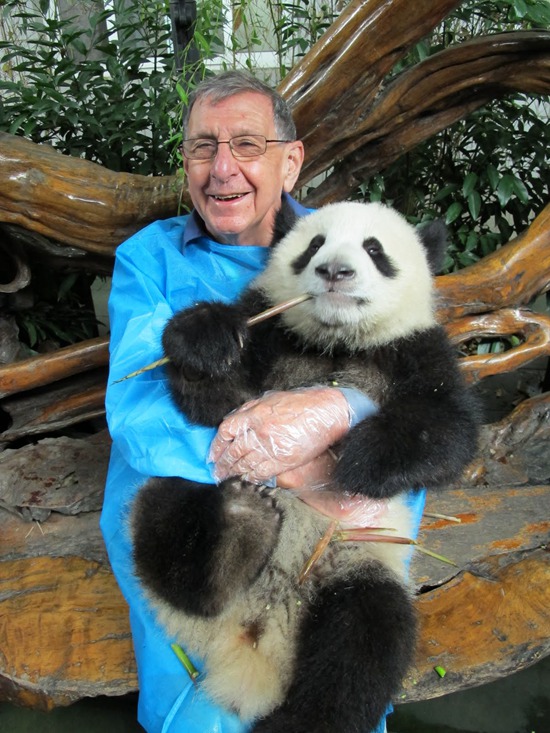 費思棻在成都懷抱大熊貓(圖片由受訪者提供)