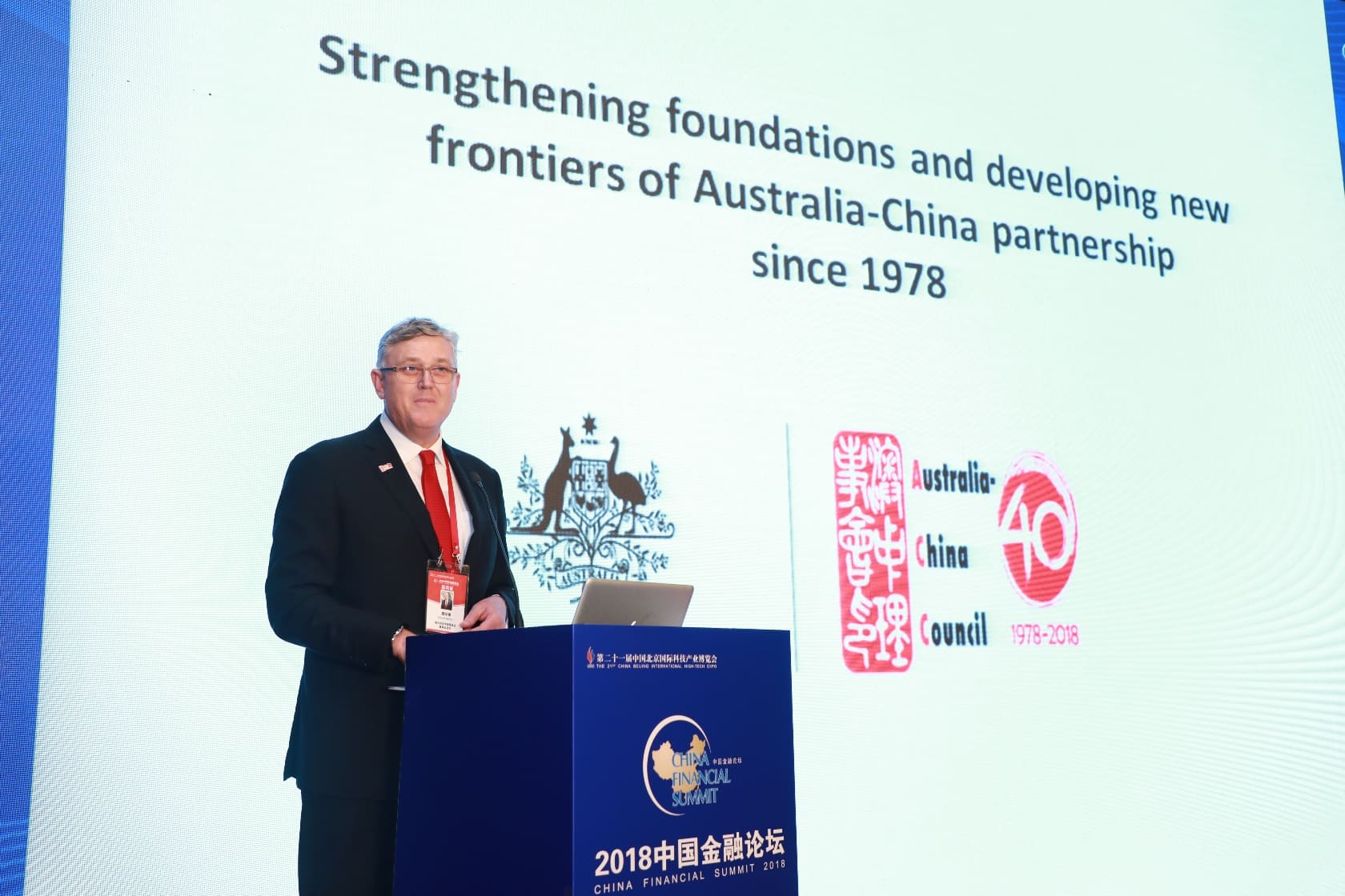 2018年,魏華德在于北京舉辦的中國金融論壇上發表講話(圖片由受訪者提供)