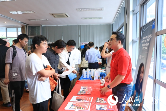活動現場,航司、銀行、警局、留學服務機構等單位代表為學生提供咨詢服務(攝影 王泉驕)