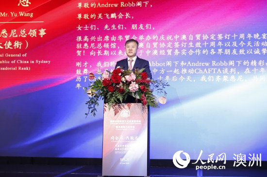 中國駐悉尼總領事王愚在致辭中表示,十年來,中澳貿易增長超過85%,中國連續16年成為澳大利亞第一大貿易伙伴,雙方合作領域持續拓展,成果豐碩。當前正值中澳全面戰略伙伴關系第二個十年的開局之年,雙方應共同努力,繼續挖掘中澳自貿協定的潛力,推動雙邊經貿關系邁上新臺階,朝著更高水平的互利共贏不斷邁進,為兩國及兩國人民帶來更多福祉。同時,他充分肯定了華貿會秉承創會宗旨,積極促進中澳兩國在經濟、貿易、科技、文化等各領域交流合作,為增進中澳友誼做出了貢獻。