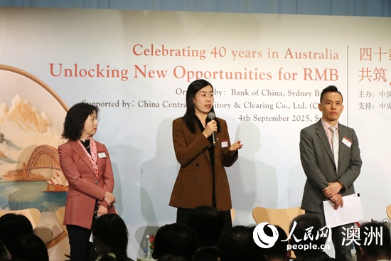 人民網悉尼9月6日電 2025年全球人民幣國際化系列路演活動澳大利亞站4日在悉尼舉辦。本次活動由中國銀行悉尼分行主辦,中央國債登記結算有限責任公司特別支持,吸引了來自中澳金融與企業界的100余名代表參會。