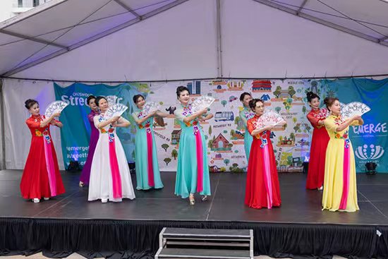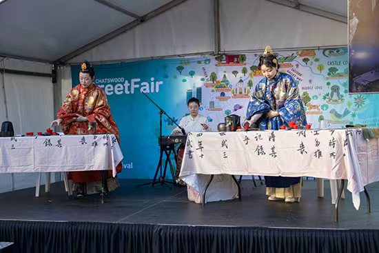 當天上午,五大舞臺同步開幕,舞蹈、合唱、武術、戲曲、器樂等節目輪番上演,展現多元文化的融合與魅力。首屆變裝大賽上,選手身著漢服、民族服飾、京劇行頭及動漫服裝同臺競藝,創意十足。中國歌手李安登臺獻唱,將現場氣氛推向高潮。來自社區和校園的樂隊、獨立音樂人以及藝術學校學員也紛紛登臺,展現青春與專業風采。六位非遺名廚現場呈現亞洲飲食文化精髓,澳中茶文化交流協會帶來福建茶藝、古箏與歌曲《福茶姑娘》等表演,為嘉年華增添東方雅韻。