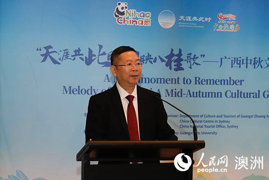 廣西壯族自治區文化和旅游廳廳長歐余軍表示,今年部省合作步履堅實、成果豐碩,通過多項活動展示了廣西豐富的文化與旅游資源。今年一月至八月,澳大利亞赴廣西游客同比增長124%,成為廣西重要客源國。中秋節是連接中澳文化的重要紐帶,期待以文化為橋、旅游為媒,讓更多廣西故事通過悉尼走向世界。